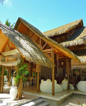 科佰仿真棕櫚葉茅草屋面系統,獨創三防兩抗技術,是仿天然茅草屋頂最理想的裝飾材料。
